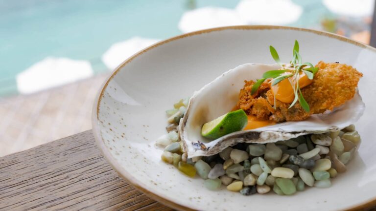 At Klive, dining is never abrupt. It enters the narrative at precisely the right moment. The sequence opens with Ostrica Fritta—a Lombok oyster, fried until the exterior gives way with a clean, audible crack. Inside, the flesh remains briny and warm, held together by restraint rather than excess. The accompanying homemade spicy Cajun mayo does not dominate; it sharpens. A controlled heat that wakes the palate without claiming it.